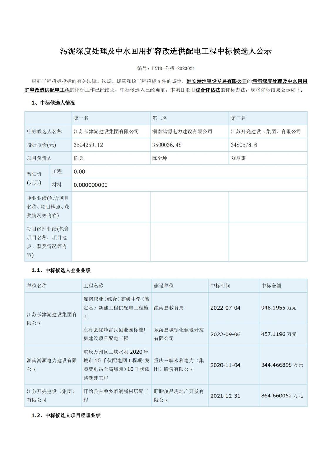 污泥深度處理及中水回用擴容改造供配電工程中標候選人公示